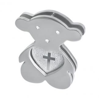 STAINLESS STEEL PENDANT Bear shape with cz In heart & cross in centre