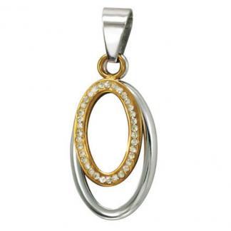 STAINLESS STEEL PENDANT In 2 Oval shape with CZ In IPG 2 tones