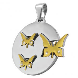 STAINLESS STEEL PENDANT In Circle Shape with IPG Butterfly with CZ