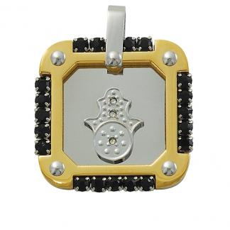 STAINLESS STEEL PENDANT In IPG two tone with Black CZ