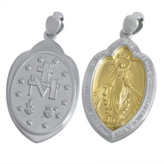 STAINLESS STEEL PENDANT In Oval Shape With Lady of the Miraculous In IPG two tones