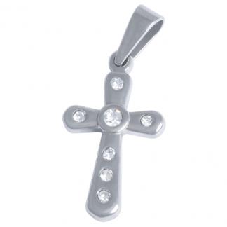 STAINLESS STEEL PENDANT IN CROSS SHAPE WITH 7 CZ ALL IN S/S COLOR