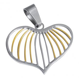 STAINELSS STEEL PENDANT IN HEART SHAPE WITH CUTOUT IN IPG TWO TONE
