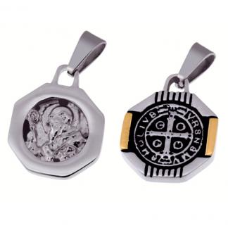 STAINLESS STEEL RELIGIOUS PENDANT WITH BLACK COLOR WITH SAN BENITO IN IPG TWO TONE