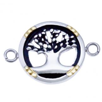 STAINLESS STEEL PENDANT WITH TREE OF LIFE WITH BLACK ENAMEL IN IPG TWO TONE