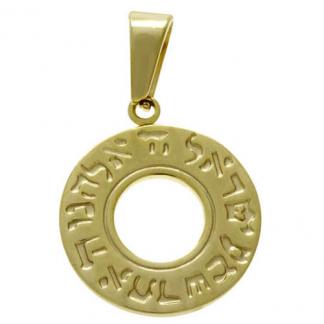 STAINLESS STEEL PENDANT IN CIRCLE SHAPE WITH CUTOUT WITH TEXT PATTERN ALL IN IPG COLOR