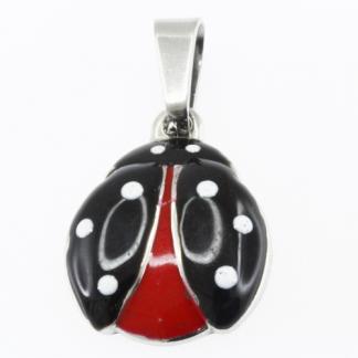 STAINLESS STEEL BEETLE PENDANT WITH BLACK AND RED ENAMEL