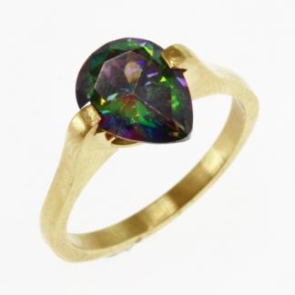 COPPER RING WITH ONE MULTI COLOR STONE IN DROP SHAPE