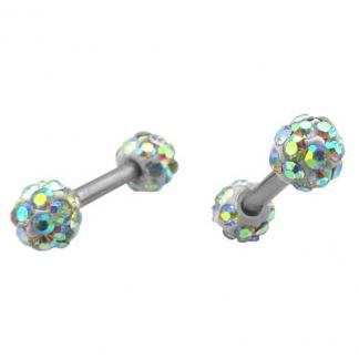 STAINLESS STEEL EARRINGS IN ROUND SHAPE WITH CZ WITH 2 BALLS ON EACH PIN CAN BE DONE WITH DIFFERENT STONE COLOR