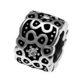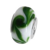 STAINLESS STEEL BEAD IN CIRCLE SHAPE WITH FLOWER PATTERN WITH GREEN AND YELLOW ENAMEL IN STEEL COLOR