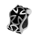 STAINLESS STEEL BEAD IN ROUND SHAPE WITH MESH PATTERN WITH BLACK OIL PAINTING IN STEEL COLOR