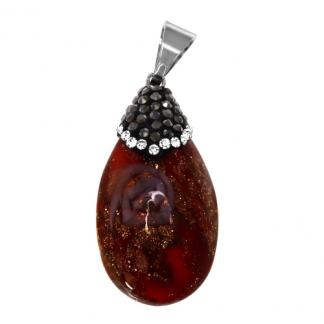 STAINLESS STEEL PENDANT WITH PURPLE STONE IN DROP SHAPE WITH BLACK & WHITE CRYSTAL AND BAIL IN S/S COLOR