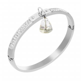 STAINLESS STEEL BANGLE IN S/S COLOR WITH CZ WITH DROP CRYSTAL