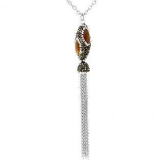 STAINLESS STEEL NECKLACE WITH PENDANT NATURAL STONE WITH CRYSTAL BLACK & WHITE WITH THIN CHAIN IN CASCADE IN S/S COLOR