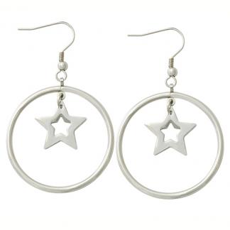 STAINLESS STEEL EARRING IN ROUND SHAPE WITH STAR ALL IN S/S COLOR