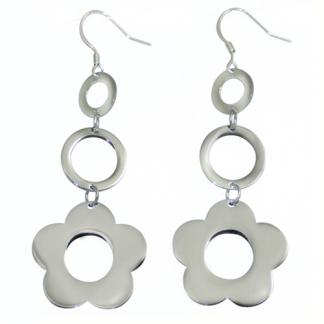 STAINLESS STEEL EARRING IN FLOWER SHAPE WITH 2 CIRCLE ALL IN S/S COLOR