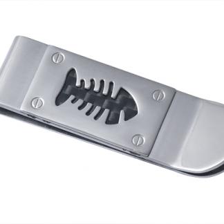 STAINLESS STEEL TIE CLIP WITH BLACK CARBON FIBRE IN FISH SHAPE