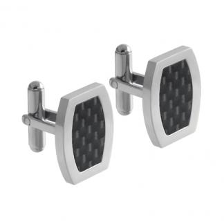 STAINLESS STEEL CUFF LINK WITH BLACK CARBON FIBRE