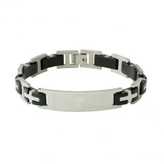 STAINLESS STEEL BRACELET PU WITH CENTRE PLATE WITH CROSS & BIBLE VERSE