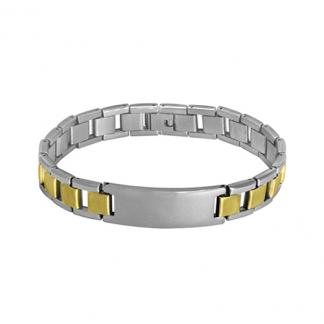 STAINLESS STEEL BRACELET IPG TWO TONE WITH CENTRE PLATE WITH CROSS & BIBLE VERSE