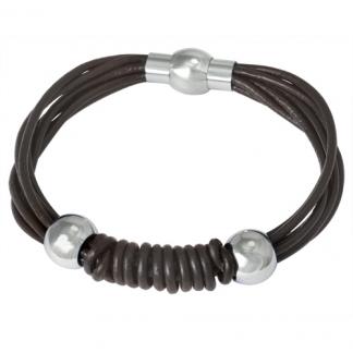 STAINLESS STEEL BRACELET IN BROWN LEATHER WITH 2 PCS OF STAINLESS STEEL