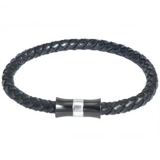 STAINLESS STEEL BRACELET IN IPB 2 TONE BLACK LEATHER