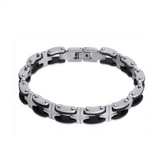 STAINLESS STEEL BRACELET WITH PU ALL IN STEEL COLOR