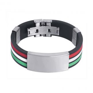 STAINLESS STEEL BRACELET WITH BLACK PU & CENTRE PLATE WITH 3 STRIP PATTERN (IN RED