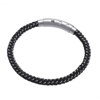 STAINLESS STEEL BRACELET WITH BLACK PU WITH WIRE IN BLACK & SS COLOR