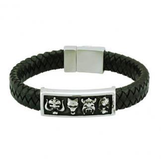 STAINLESS BRACELET IN LEATHER WITH MAGNET LOCK WITH SKULL PLATE