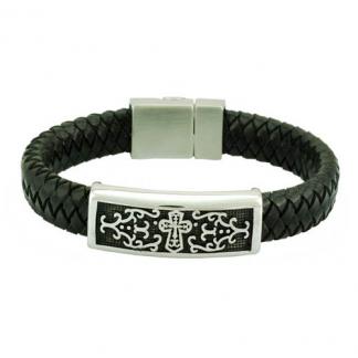 STAINLESS STEEL BRACELET IN BLACK PU WITH CROSS PLATE WITH MAGNET LOCK