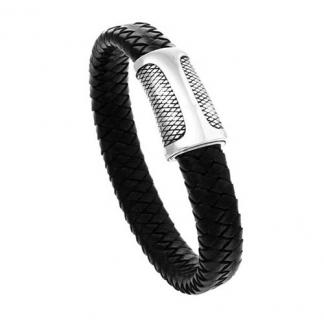 STAINLESS STEEL BRACELET IN BLACK OR BROWN LEATHER WITH CENTER MAGNET LOCK