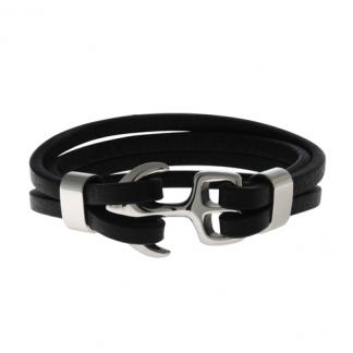 STAINLESS STEEL BRACELET IN LEATHER WITH ANCHOR LOCK