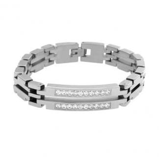 STAINLESS STEEL BRACELET ALL IN S/S COLOR PLATE WITH WITH 2 LINES OF CZ