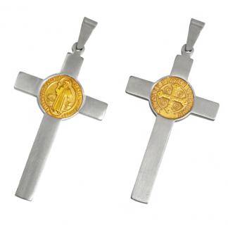 STAINLESS STEEL PENDANT IN CROSS SHAPE WITH SAN BENITO IN IPG TWO TONE
