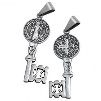STAINLESS STEEL KEY PENDANT WITH SAN BENITO (TWO SIDES DIFFERENT) IN STEEL COLOR WITH BLACK COLOR