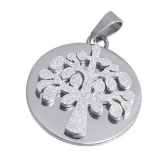 STAINLESS STEEL PENDANT WITH TREE OF LIFE WITH SANDBLAST ALL IN STEEL COLOR