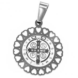 STAINLESS STEEL PENDANT IN CIRCLE SHAPE WITH SAN BENITO WITH LASER EFFECT ALL IN S/S