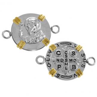 STAINLESS STEEL PENDANT WITH SAN BENITO IN CIRCLE SHAPE IN IPG TWO TONE WITH BLACK ENAMEL TWO SIDE ARE DIFFERENCE