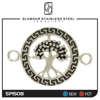 STAINLESS STEEL PENDANT WITH TREE OF LIFE WITH BLACK ENAMEL IN S/S COLOR