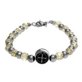 STAINLESS STEEL BRACELET WITH CRYSTAL & S/S BEADS WITH SAN BENITO CIRCLE PENDANT