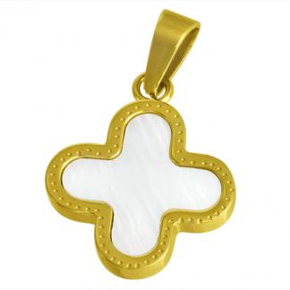 STAINLESS STEEL PENDANT IN LEAF SHAPE WITH SHELL ALL IN IPG COLOR