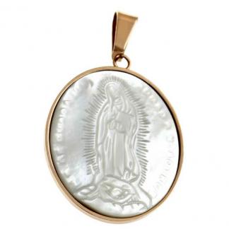 STAINLESS STEEL OVAL PENDANT IN OVAL SHAPE WITH GUADALUPE IN SHELL IN IPR COLOUR