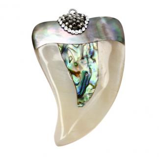 STAINLESS STEEL PENDANT IN HORN SHAPE WITH A PSYCHEDELIC DESIGN AND BLACK & WHITE CZ ALL IN S/S IN SHELL