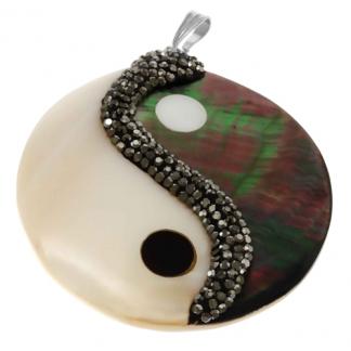 STAINLESS STEEL PENDANT IN CIRCULAR SHAPE WITH A COLORFUL PAINTING AND 1 FLOWER WITH CYSTAL AND BAIL IN S/S COLOR.
