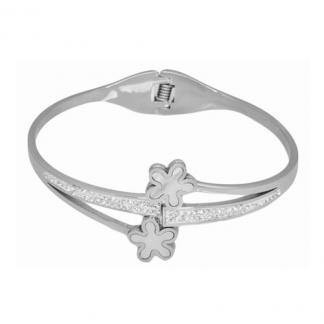 STAINLESS STEEL BANGLE ALL IN STEEL COLOR WITH 2 FLOWER WITH SHELL WITH CZ