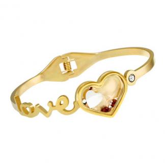 STAINLESS STEEL BANGLE IN IPG COLOR WITH 1 CZ WITH SHELL & CRYSTAL IN HEART SIZE WITH LOVE WORD