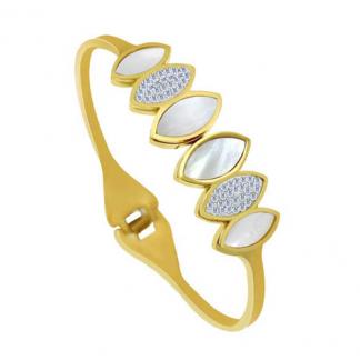 STAINLESS STEEL BANGLE IN IPG COLOR WITH 6 LEAVES WITH SHELL & CZ