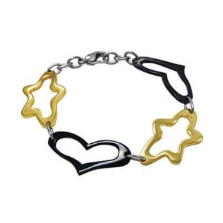 Stainless Steel Bracelet IPG Star & IPB Heart two tone