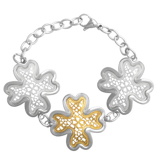 Stainless Steel Bracelet WITH 3 CLOVER FLOWER SHAPE IN IPG TWO TONE